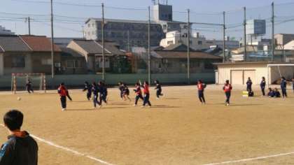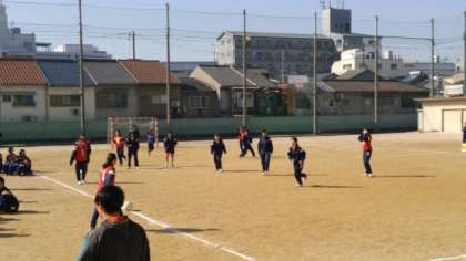2回戦Bコートの1B対2Bの様子です。この試合は、互いに得点を決めることができず0対0の引き分けとなりました。これで2年生の2勝1敗1分けです。