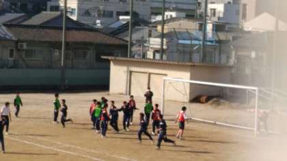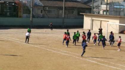 この3枚の写真は、2年生の得点シーンです。コーナーキックからのボールに合わせた、見事なゴールでした。この試合は、3対1で2年生の勝利でした。