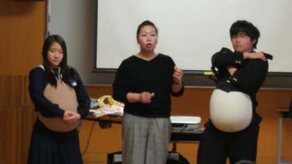 3月7日(水)5,6限、本校多目的室で1年生性教育の取組を実施しました。助産師さんに来ていただき、講話、妊婦体験、DVD視聴等いろいろ学びました。「今、ここにみんながいるのは愛があったからこそ」「いじめられるために生まれたのではない」「いじめるために生まれたのではない」「悩むことは考えること」などいろいろお話していただきました。