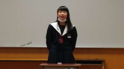 続いて、「かに(十脚目短尾下目(じっきゃくもくたんびかもく)に属する甲殻類(こうかくるい)の総称 かにの料理は、やっぱり鍋がいちばん!)」「SARASA(サラサ 日本の文具メーカーが販売するゲルインクボールペン 46種類あるが、色はペールブルーがおすすめ!)」についてのスピーチがありました。