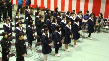 「送別の歌」です。1,2年生が「この星に生まれて」を歌います。明日は、空席になっている保護者席もたくさんの方々で埋めつくされることと思われます。