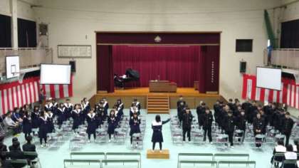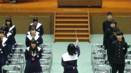 体育館後方から撮った写真です。女子の歌声がとても美しいです。明日も46期生の美しいハーモニーを響かせてください。