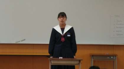 続いて、「ラーメン(明治時代に開国された港の中華料理店から、各地に広まっていった麺料理 漢字表記は拉麺、老麺または柳麺)醤油ラーメンがおすすめ!」「パピコ(食べやすいように設計されたチューブ型の容器に封入されているチューブ型アイス)」についてのスピーチがありました。