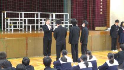 続いて、「青少年非行防止ポスター 感謝状」(西成区PTA・OB会会長、西成区PTA協議会会長より)です。まずは、1年生から。1年生は、全員男子でした。
