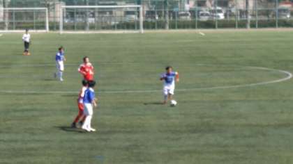 写真は、対鶴見橋中戦の様子です。鶴見橋中は部員が足りないので、3年生が3人出場しています。青色ユニフォームが梅南中です。開始早々(写真1枚目、2枚目)、梅南中が放ったシュートが相手ゴール左に決まりました!幸先の良いスタートです。