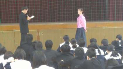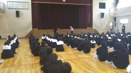 代表生徒がしっかりとあいさつをしてくれました。この後、1年生集会がありました。