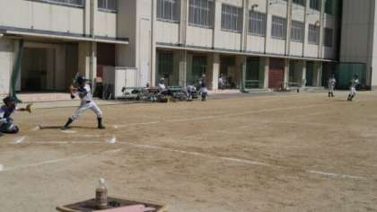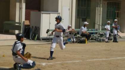 4回表の攻撃の様子です。ノーアウトから2番バッターがフォアボールで出塁、送りバント、進塁打で2アウト3塁となりました。(写真1枚目が2アウト3塁の場面)