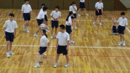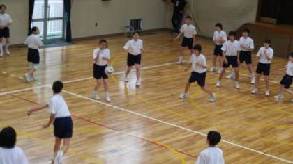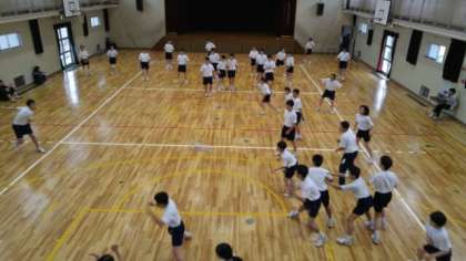 開始早々は、コート内の人数も多く、どんどん当てられてしまいます。必死に逃げ回る様子が写っています。女子も頑張っていますね。