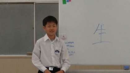 2年生では、1年生のときの「1分間スピーチ」を発展させ、「1分半スピーチ」になり、テーマは「私の好きな漢字」、自分の好きな漢字について話します。