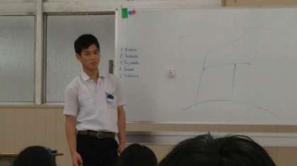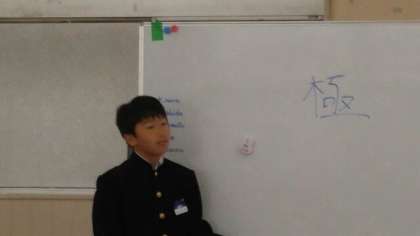 今日は、5人のスピーチがありました。一人目が選んだ漢字は「真」。選んだ理由は、「自分の名前に使われていて、学問の神様といわれる菅原道真の1文字でもある」から、とのことでした。続いて、「極」。「極」の右上が「てっぺん」右下が「床」を表し、緊張した人が立っているという意味、自分は堂々とした態度でいたいとのことでした。