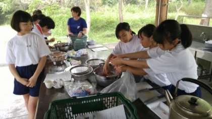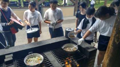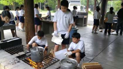 火を起こし、野菜や肉を切りカレールーを入れて