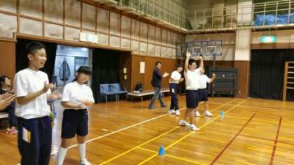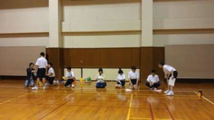 「ぞうきんリレー」は慣れないせいか、滑ってしまう人が