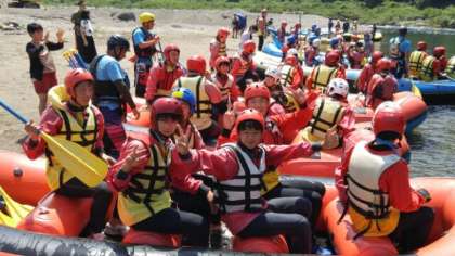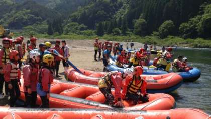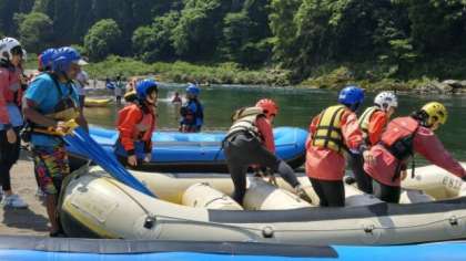 ゴムボートに乗り込み始めました。