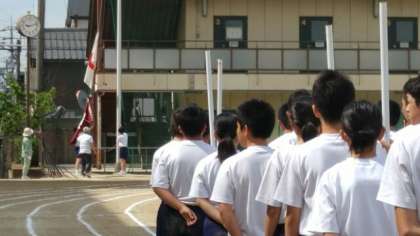 開会式の練習です。生徒会会長による「開会宣言」、「国旗等の掲揚」、「国歌等の斉唱」と続きます。今日も元気な歌声が響きました。