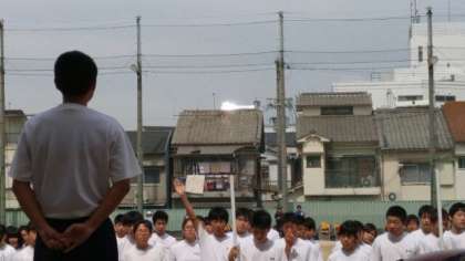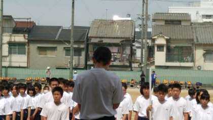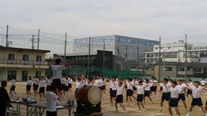 「応援上の注意」、「準備体操」の様子です。本番もしっかり頑張ってください。