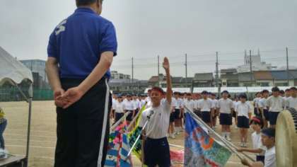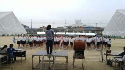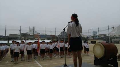 PTA会長あいさつ、生徒会長あいさつ、選手宣誓と続きました。ちょうどこの辺りは、小雨が降っていました。