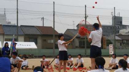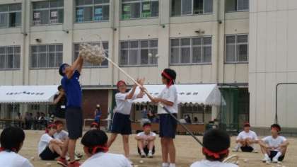 入った球を数えています。どの学年もたくさん入っているので2球ずつ数えました。最後の1玉は、高く投げあげます。