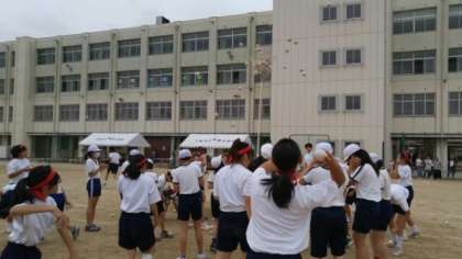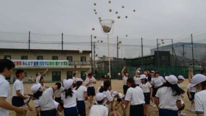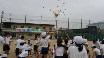 どちらがたくさん入るのでしょうか。どんどん玉を投げ込んでいきます。