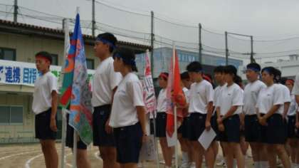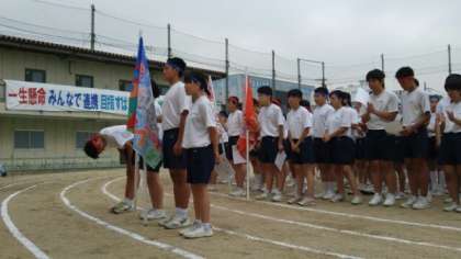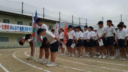 保護者席に移動、3年生の体育委員がお礼の言葉を言っています。保護者席からねぎらいの声や拍手をいただきました。