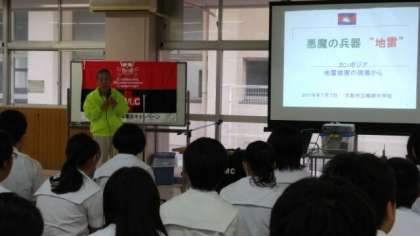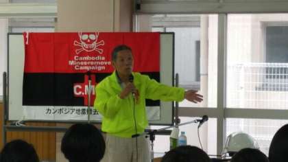 7月7日(土)、「一般財団法人 カンボジア地雷撤去キャンペーン−CMC−」大阪事務局より森本榮三さまにお越しいただき「平和・人権登校日(土曜授業)」を実施しました。