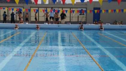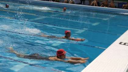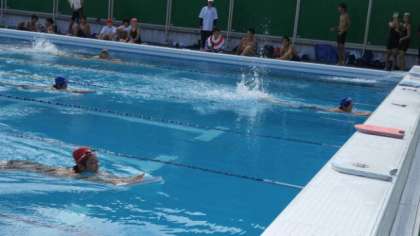つづいて、女子25mビート板の様子です。これは、脚力とビート板の浮力を最大限に生かせる持ち方で勝敗が決するようです。