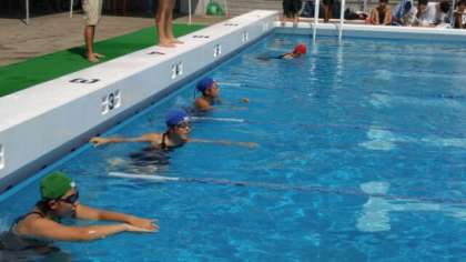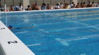 女子50m平泳ぎ第2レースの様子です。今度は2−2がダントツのようです。