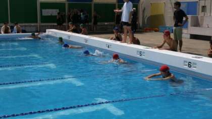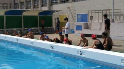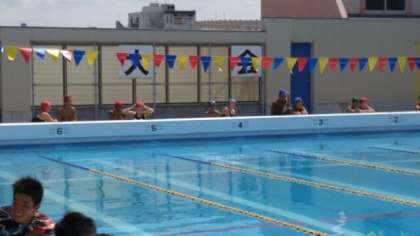 リレー種目が始まりました。まずは、男女混合リレーです。25mずつを4人で、合計100mのリレーです。写真1枚目は、第1・第3泳者、写真2枚目は、第2・第4泳者です。