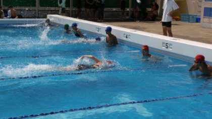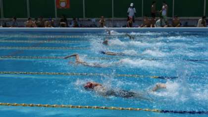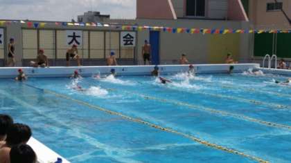 男女混合リレーの続きです。第1泳者から第2泳者へ、そして第2泳者から第3泳者へと、というところです。ここまでは、2−1と3−1が速いようです。