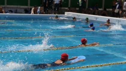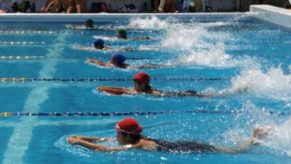 続いて、女子100mビート版リレーの様子です。これは、25mずつを4人、合計100mを泳ぐというものです。