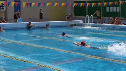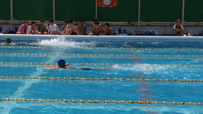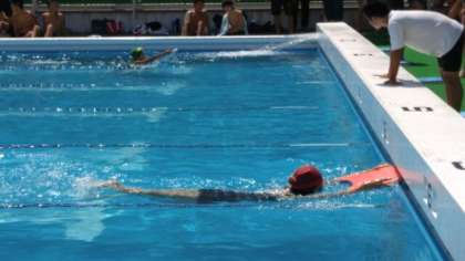 写真1枚目は、第3泳者です。1−1と2−2が1位、2位です。後続は写真には写っていません。ところが、3−1がものすごいスピードで(写真2枚目)追い上げてきました。