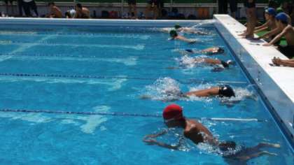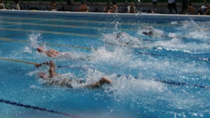 男子100m自由形リレーの様子です。2,3年生が速いようです。