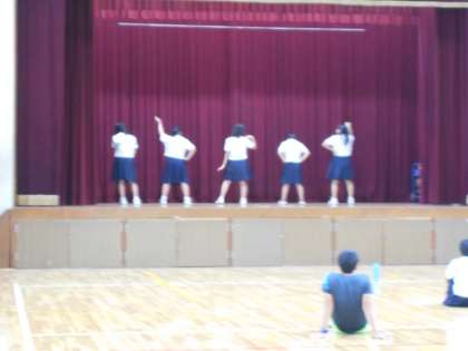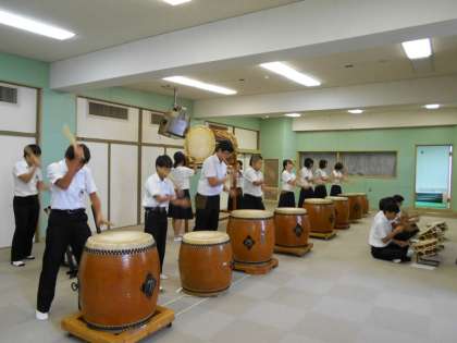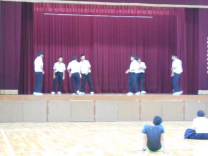 本日は初めて体育館で動きや時間の確認をしました。太鼓のグループは視聴覚室で猛特訓です。だんだんそろうようになってきています。