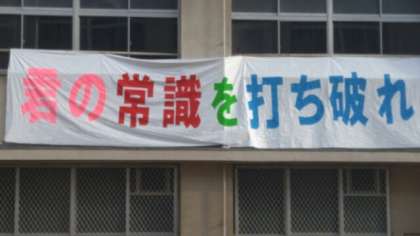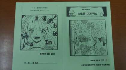 先日、プリントや写真にあるプログラムで案内いたしましたが、いよいよ明日は文化祭です。今年の文化祭のテーマは、「君の常識を打ち破れ」、スローガンは「In Fact・・・」(「実は、実際には」という意味)です。