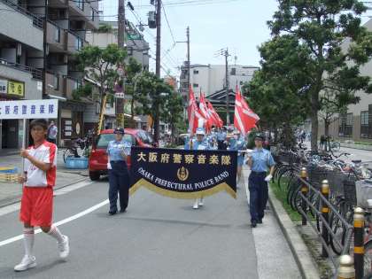 7月11日(金)14:00〜行われます『社会を明るくする運動パレード』に、生徒会役員・部活移動部員の92名が参加します。天候が少し心配されますが、45分程度のパレードでありますので、ぜひ見にきてください。場所は、天下茶屋駅前のノア・インドアステージ天下茶屋ふれあい広場からスタートし、大阪府警察音楽隊を先頭に、西成区役所までパレードします。左の写真は、昨年度のパレードの様子です。