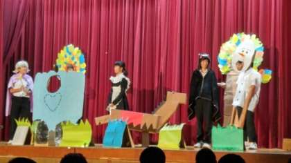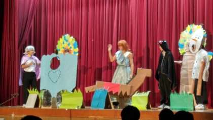 妖精の力で、馬車、馬、オラフ(「アナと雪の女王」に出てくるアナが旅の途中で出会う、夏に憧れる不思議な雪だるま)、謎のくまモンが用意されました。しかし、肝心のドレスが無いことをシンデレラが訴えます(写真1枚目)。