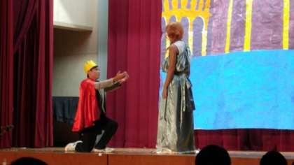 妖精は、魔法の力でシンデレラにドレスを着せます。なぜか髪の色や身長が変わっています(写真2枚目)。