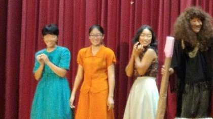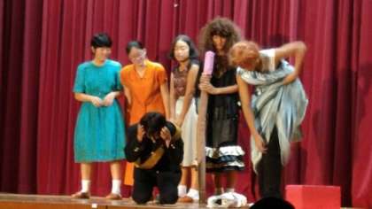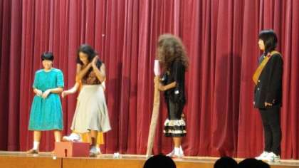 舞踏会で落としたガラスの靴を持って、家臣がやってきました。3人の姉、そして母まで必死になって自分の靴だと主張しようとしています。