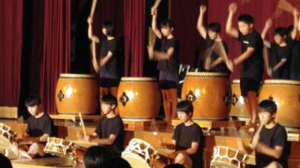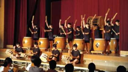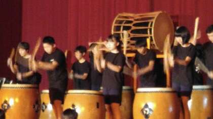 休憩、PTAコーラス(写真はありません)のあとはプログラム6番、3年生による「太鼓」と「ダンス」です。3年生にとっては、最後の文化祭です。黒い衣装が決まっています。