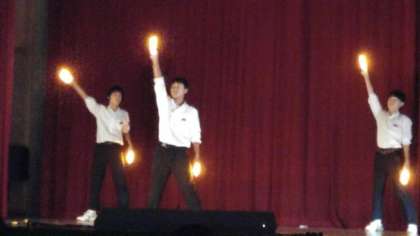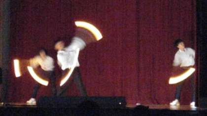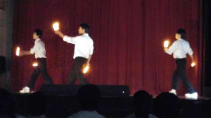 続いて、「ドラビス」によるダンス「ジコチューで行こう」です。ケミカルライト (chemical light 化学発光による照明器具)を手にポーズを決めています。