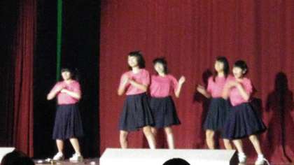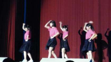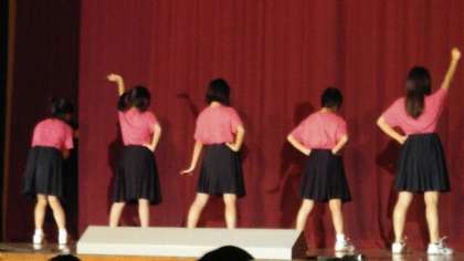 続いて「Aμ's」のダンスです。「No brand girls」という曲に合わせて踊っています。スカートにおそろいのTシャツでかわいいダンスを披露しました。