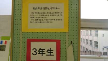 「青少年非行防止ポスター」です。これは、青少年の健全な育成と非行防止の啓発のためのポスターで、優秀作品は西成区主催の公募展に出品する予定です。また、来年平成31年7月ごろに西成区役所ロビー等に展示される予定です。