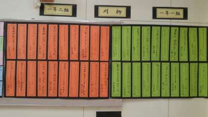 まず、1年生の「川柳」です。特にテーマは設けず、初めての「五・七・五」に取り組みました。
