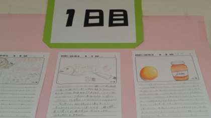 3年C−1教室最後の展示は、3年生「修学旅行日記」です。修学旅行で学んだことや、楽しかったことを絵日記で表現しています。