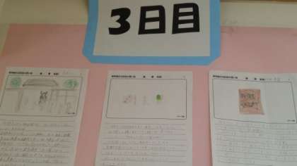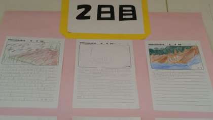 2日目は、「ラフティング」や「お泥リンピック」のことが書かれている絵日記がたくさんありました。