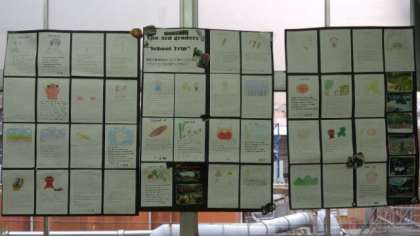 3年生は、「The 3rd graders School Trip」です。英語で修学旅行についてイラスト付きで紹介しています。