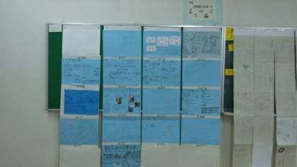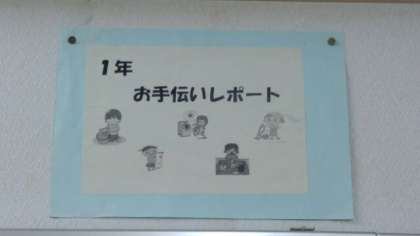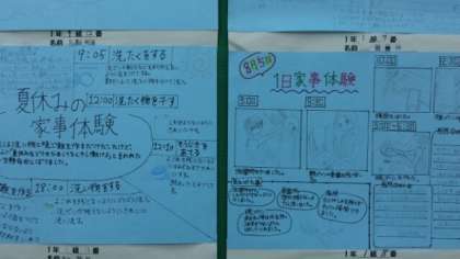 家庭科1年生「お手伝いレポート」です。夏休み中に「1日家事体験」をし、それをレポートにまとめたものです。