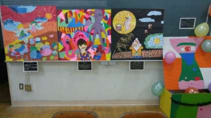 1年生の4つの展示作品「死と海」「満ちた夜」「異次元」「ファンタジー」です。