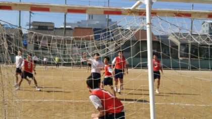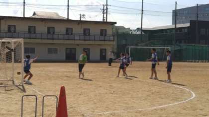 ゲームの様子の写真を何枚か紹介します。1時間目に降っていた雨もやみ、4限目はすっかり青空が広がるいい天気です。