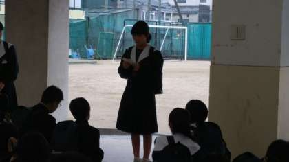 代表生徒の司会、挨拶のあと学校を出発しました。