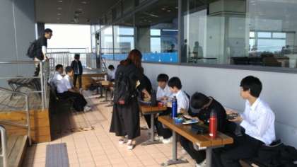 飛行機を間近に眺めながらの昼食風景です。